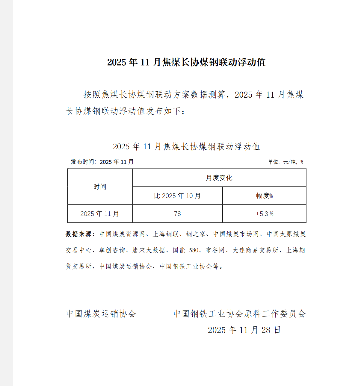 按照焦煤长协煤钢联动方案数据测算,2025年11月焦煤长协煤钢联动浮动值比2025年10月上涨78元/吨悦倍网,涨幅5.3%。