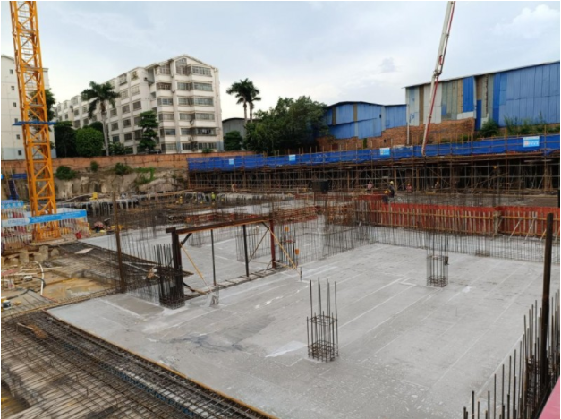 该项目应用了氧化镁膨胀剂,为确保项目顺利浇筑,广西公司前期与项目方深入对接,开展多次试验与方案优化,科学确定掺量比例,确保混凝土性能满足施工要求。在浇筑过程中,广西公司安排专人值守现场,时刻反馈混凝土出泵情况,保障现场顺利浇筑。